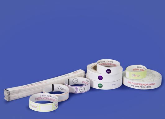Brazaletes en adhesivo térmico el cual permite hacer impresión variable con